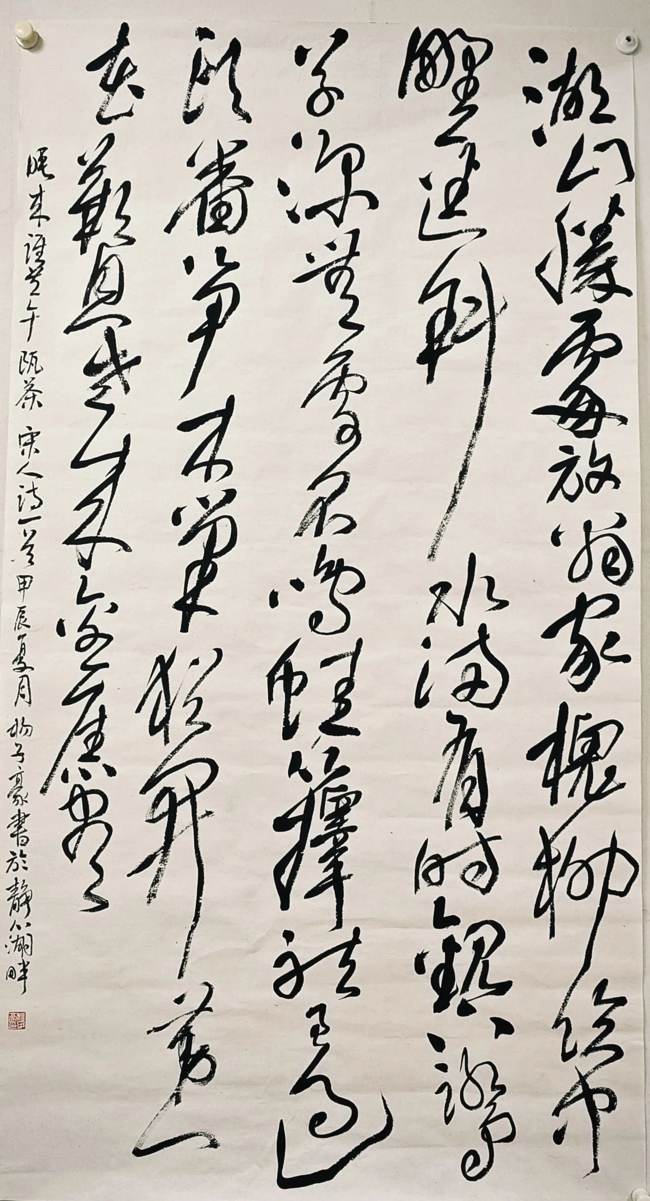 草书是一种表现力极强的书体,也是书家性情的体现。在创作过程中,我们首先要根植传统,学习掌握草书的笔法、结构、章法,从古代诸多书家中选择适合自己的风格,与古为徒,扎根古人经典作品。再结合当今时代的创作风向,最终创作出符合当代审美的作品。