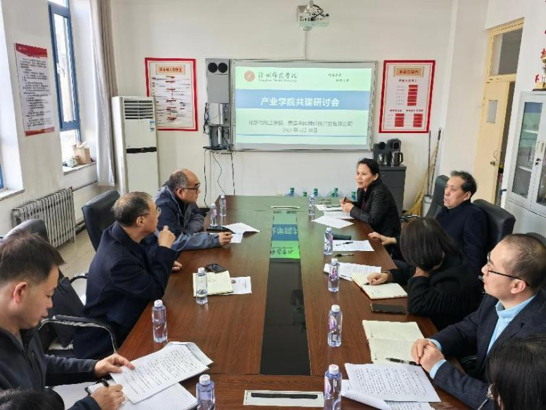 与会人员围绕着产业学院建设,依据“资源共享、优势互补、互利共赢、协同发展”原则,就合作模式、专业设置、招生就业、双放投入、职业考证及项目设备等相关事宜展开深入讨论。校企双方就双师层次提升、实践教学课程共建、产教融合项目申报、实验室共建等方面达成共识,后期将就共建专业、学科建设等进行进一步调研及相关材料准备。范小振强调产业学院的建设不仅是学校高质量发展的突破口,更是服务地方产业链升级的“助推器”。希望双方充分整合资源,积极推进产业学院建设,有效破解传统教育中理论与实践脱节的难题,培养“懂技术、能创新、适应产业变革”的高素质化工人才。