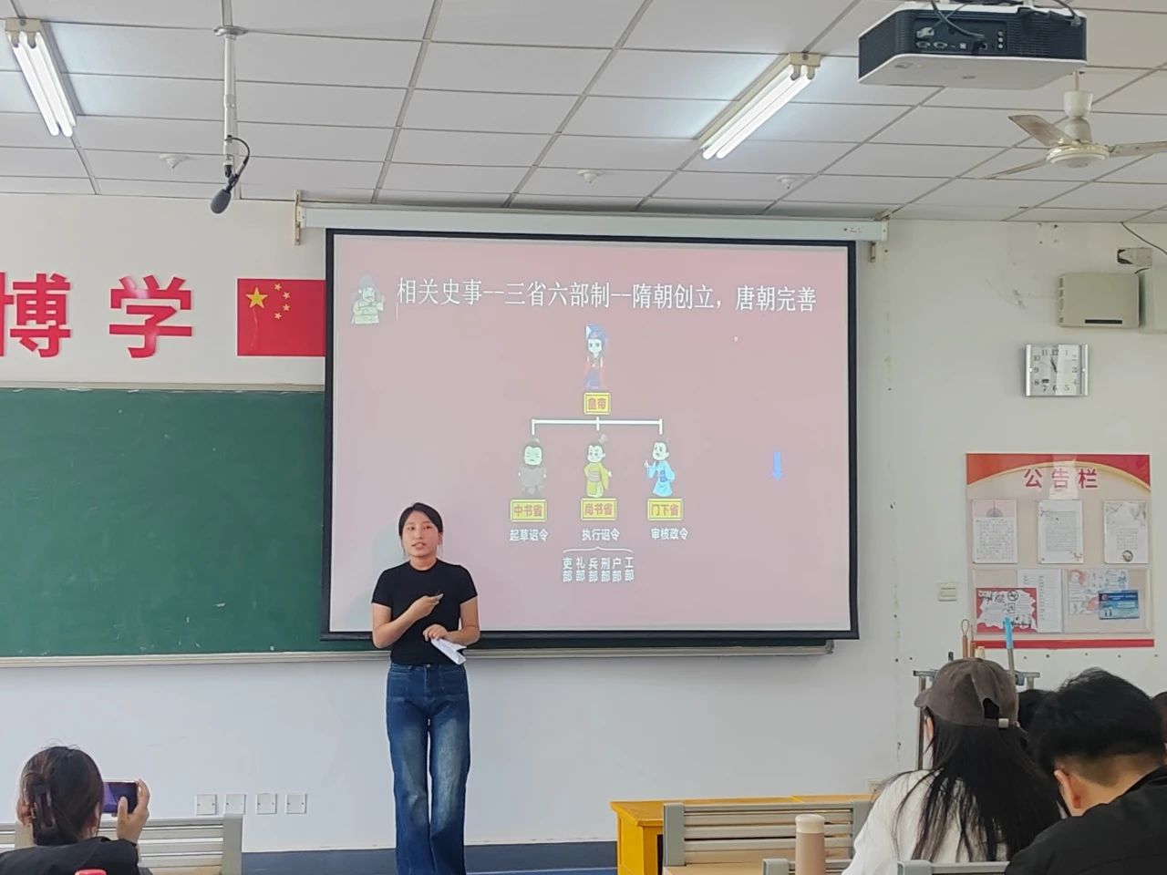 马佳悦、柳旭诚、孟祎蕊、公婷婷四位学生代表围绕七年级上册《贞观之治》进行同课异构试讲。试讲通过多样化的教学设计,将理论知识与实际教学场景相结合,展现了师范生的专业素养与创新思维。