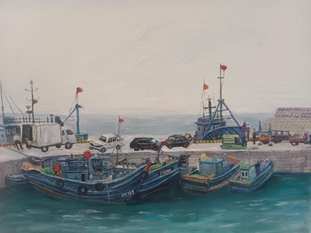 在本次的创作中,我力求传达渔船所承载的生活气息与文化内涵。通过色彩、线条和光影的巧妙运用,我试图捕捉渔船在波光粼粼的海面上摇曳的动感,以及渔民辛勤劳作的场景。创作中,我重视渔船结构与质感的真实表现,同时融入个人情感与审美理解,使之不仅是客观存在的再现,更是心灵的投射。渔船油画不仅是对大自然和劳动者的赞美,更是对海洋文化和渔村生活的深刻诠释。通过艺术创作,我希望能够引起观者对传统渔业的关注,以及对海洋环境保护的思考,传递一种和谐共生的理念。