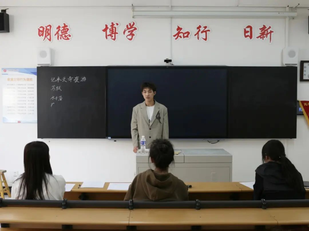 在前期笔试中,同学们展现出扎实专业理论基础。在面试现场,准毕业生更加精神饱满,通过小组讨论、巧妙设问等方式进行精彩教学展示,诠释古诗词和现代文内涵,尽显四年学习成果。