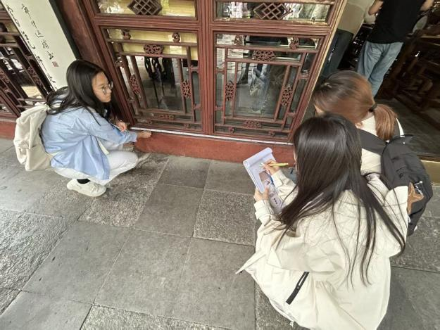在苏州留园、拙政园、网师园、狮子林等处,学生们进行了园林建筑测绘,园林效果图速写,深刻感受“不出城廓而获山水之怡,身居闹市而得林泉之趣”的古典意境。