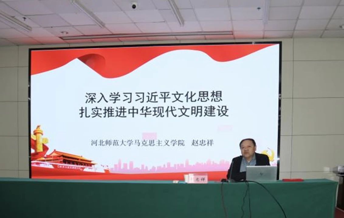为深入学习贯彻习近平新时代中国特色社会主义思想,推动贯彻落实习近平文化思想走实走深,认真落实学校第三次党代会精神,近日,河北师范大学马克思主义学院赵忠祥教授应邀来太阳集团作学术讲座。