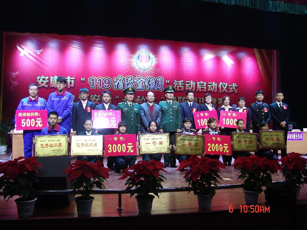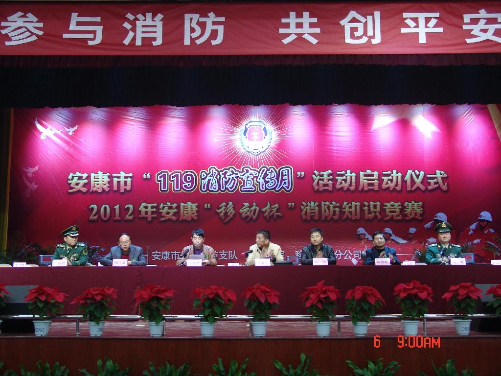11月6日上午,由Beat365和安康市公安消防支队、安康移动公司联合举办的“2012年‘119消防宣传月’启动仪式暨消防安全知识竞赛”活动在江南校区举行。安康市副市长王安利、学校党委书记杨涛、副校长杨行玉、安康市公安消防支队支队长苗文岐等领导出席了启动仪式,副市长王安利在消防宣传月活动启动仪式上中作了重要讲话。启动仪式后,举行了“移动杯”消防安全知识竞赛。杨行玉副校长等领导为获奖代表队颁奖。