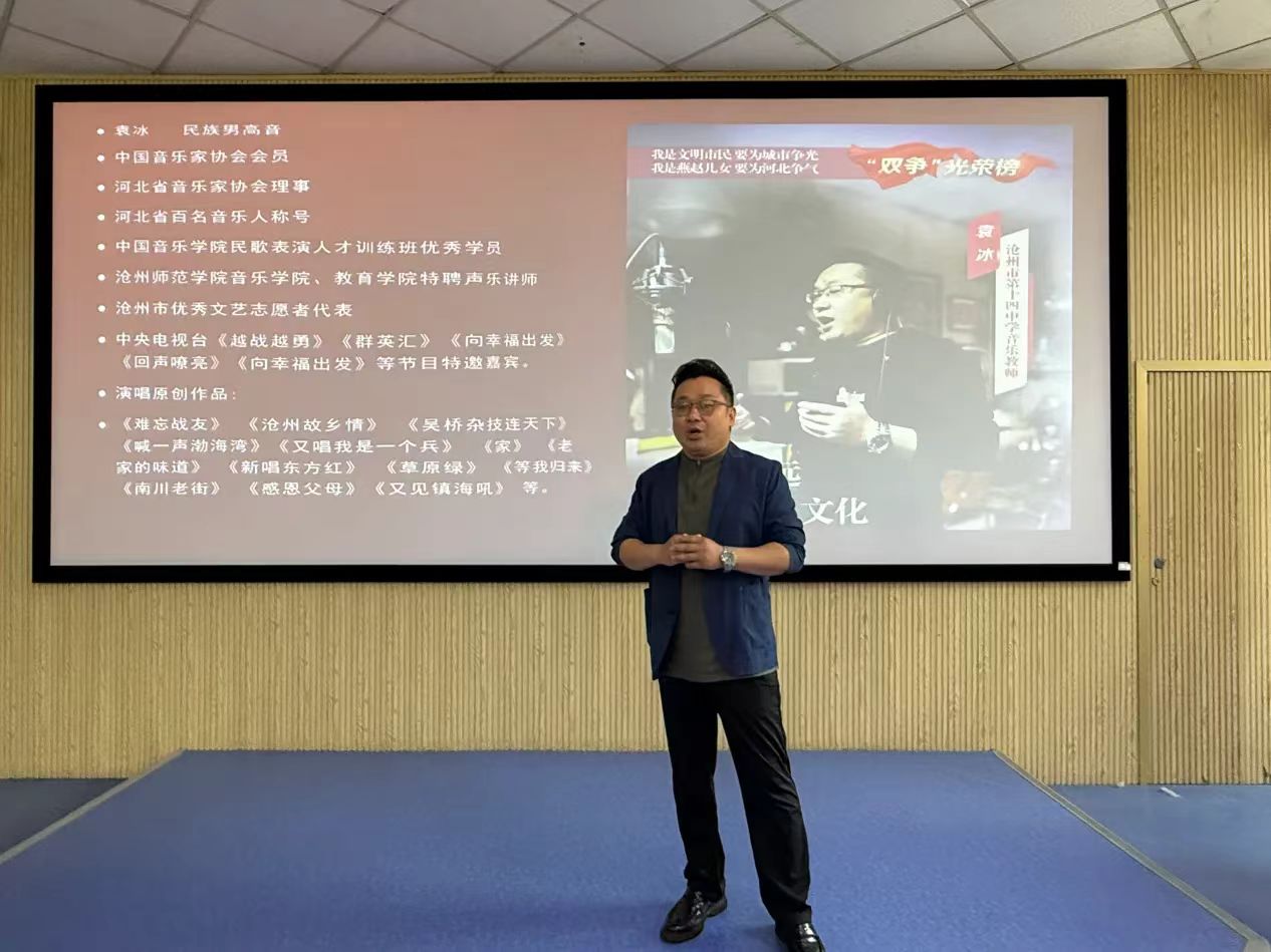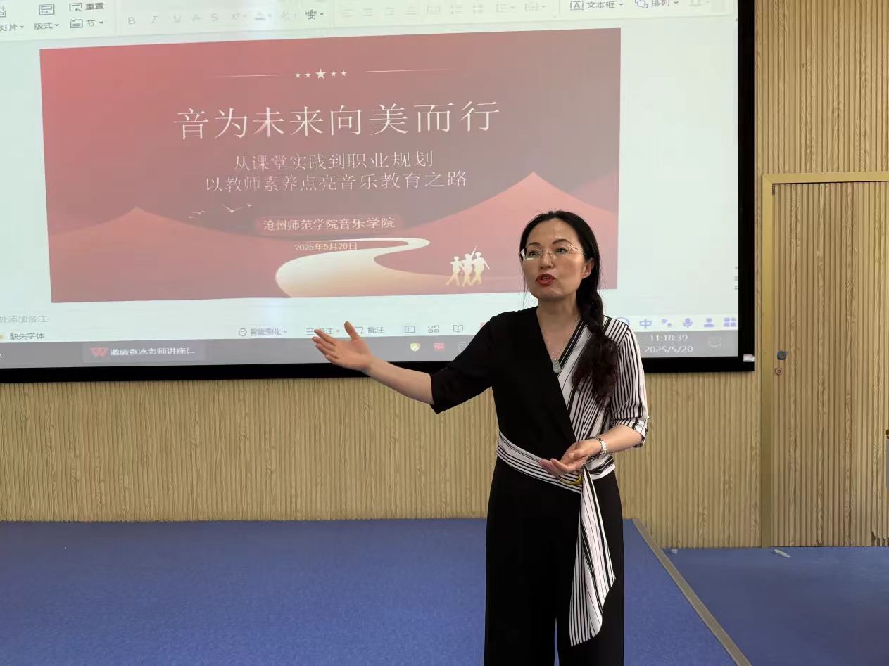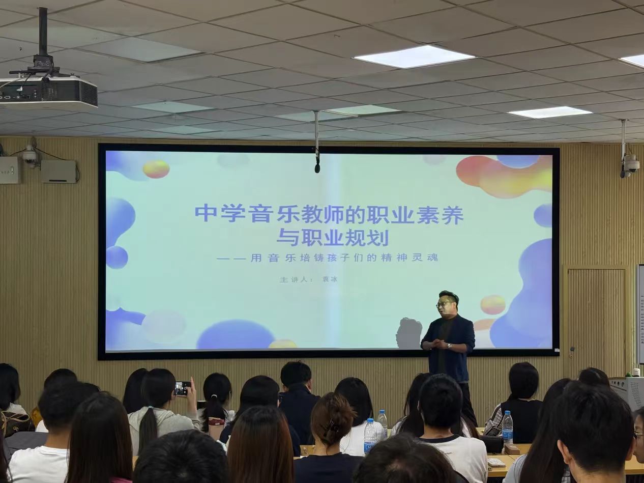 为助力音乐学师范类学生明晰职业方向,合理规划职业发展路径,提升专业素养,5月20日上午,音乐学院邀请沧州市第十四中学教师袁冰开展“中学音乐教师的职业素养与职业规划”专题讲座。音乐学院院长王霞,副院长孙旭颖、王鹏出席活动。音乐学院各教研室主任、青年教师及2022级音乐学专业、2024级音乐学专接本全体学生参加活动。音乐学院实习实训教研室主任代菲主持活动。