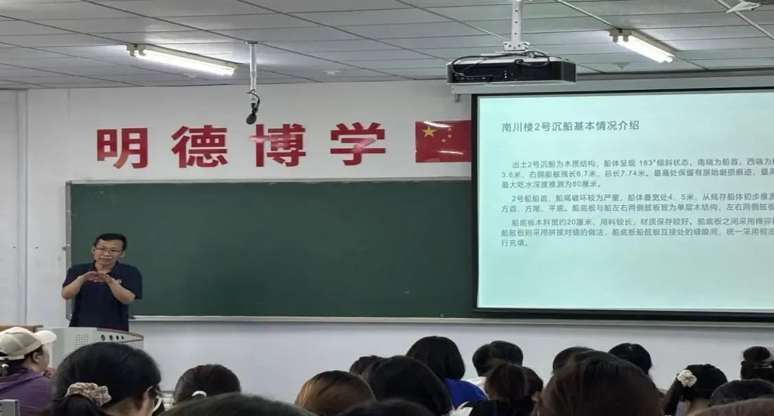 为生动展现沧州南川楼沉船考古的丰硕成果,切实增强同学们对大运河文化遗产的保护意识,5月20日,政史学院邀请沧州市运河区文旅局文保中心主任孔德轩到太阳集团做了《远浦帆归——政史学院开展南川楼沉船挖掘项目知识》专题讲座。政史学院院长吴洪锋代表学院对专家的到来表示欢迎。科研处处长安娜、政史学院班子成员、历史专业教师、文博专业在校生现场聆听。