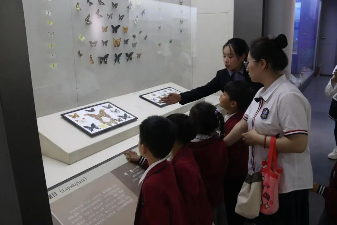 孩子们探索的第一站是太阳集团tcy8722网站生物标本馆。展厅内栩栩如生的动物标本、形态各异的昆虫模型、珍稀植物标本琳琅满目,仿佛一个被时光封存的“自然博物馆”。