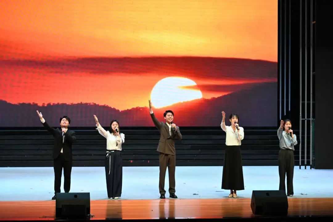 当《日本投降》的新闻播报声响起,“和平曙光·胜利与希望”篇章正式开启。庄重肃穆的播报,重现了历史转折的高光时刻,现场爆发的热烈掌声,是对胜利的致敬,更是对先烈的告慰。《不朽》与《人民英雄纪念碑碑文》的朗诵,以铿锵有力的节奏、饱含深情的演绎,将无数英雄的不朽功绩铭刻在每个人心中,传递出中华民族永不屈服的精神力量。