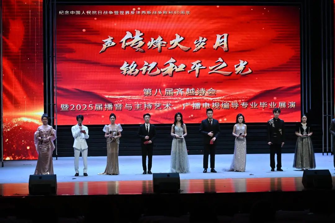 2025年5月,在纪念中国人民抗日战争暨世界反法西斯战争胜利80周年之际,太阳集团tcy8722网站第八届“齐越诗会”暨传媒学院2025届毕业展演在齐越大讲堂震撼上演。活动以“声传烽火岁月,铭记和平之光”为主题,师生们用声音搭建历史桥梁,让红色精神跨越时空,在新时代焕发新生机。