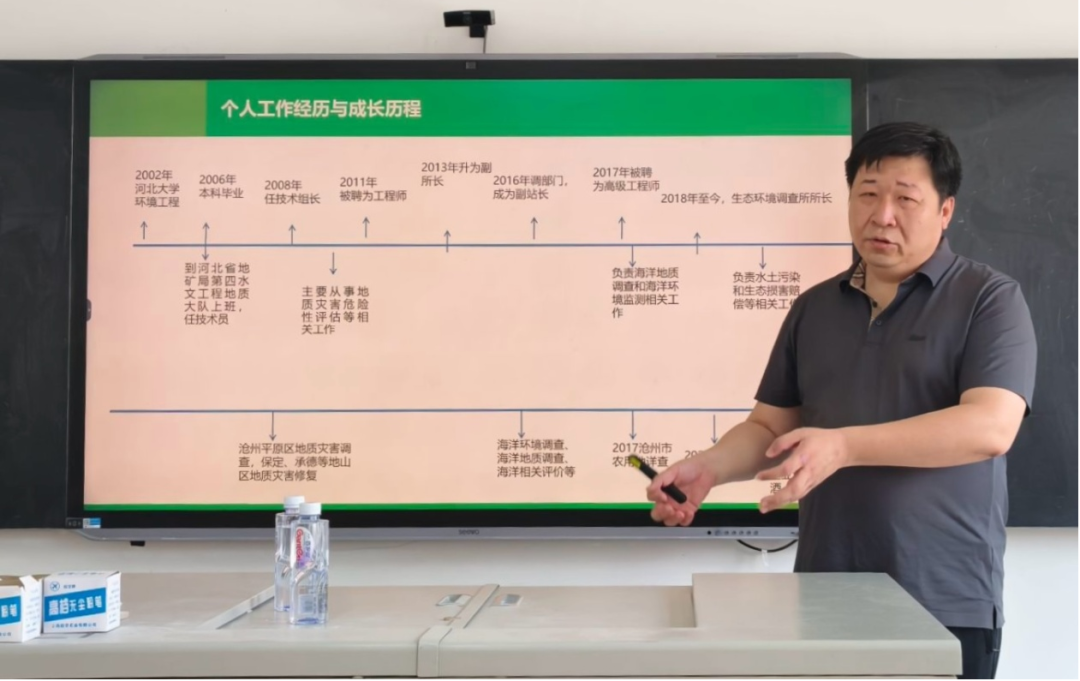 讲座中,魏强详细介绍了沧州沿海面临的海洋垃圾、石油污染、富营养化等环境问题及其对生态和产业的严重影响,并分享了政府部门在污染源管控、污水处理设施建设、生态修复工程(如增殖放流)等方面的多元治理举措。他强调,海洋治理是长期任务,需要政府、企业、高校及社会各界的共同参与和合力守护。