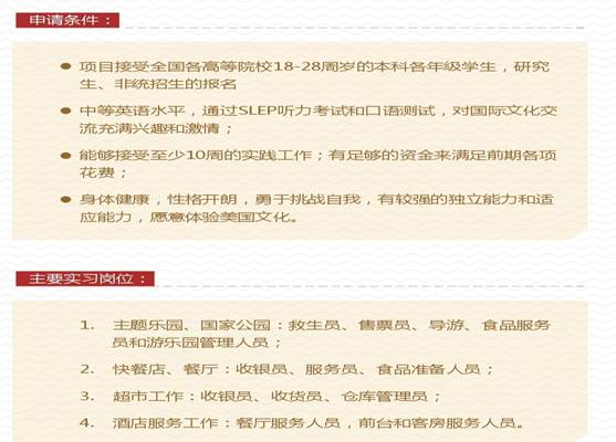为给广大同学提供体验美国文化、积累海外实习经验,Beat365与美国国际教育交流协会联合推出暑期赴美带薪实习/社会实践项目。现将关于报名参加Beat3652015年大学生暑期赴美带薪实习项目相关事宜通知如下: