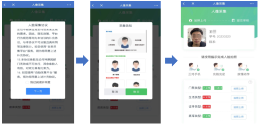 1.人脸录入必须录入本人面部照片,一旦在系统后台发现面部信息与身份信息不符,引发身份管理安全问题,造成不良后果,一经查实,视情节轻重交由学校相关部门依规处理;