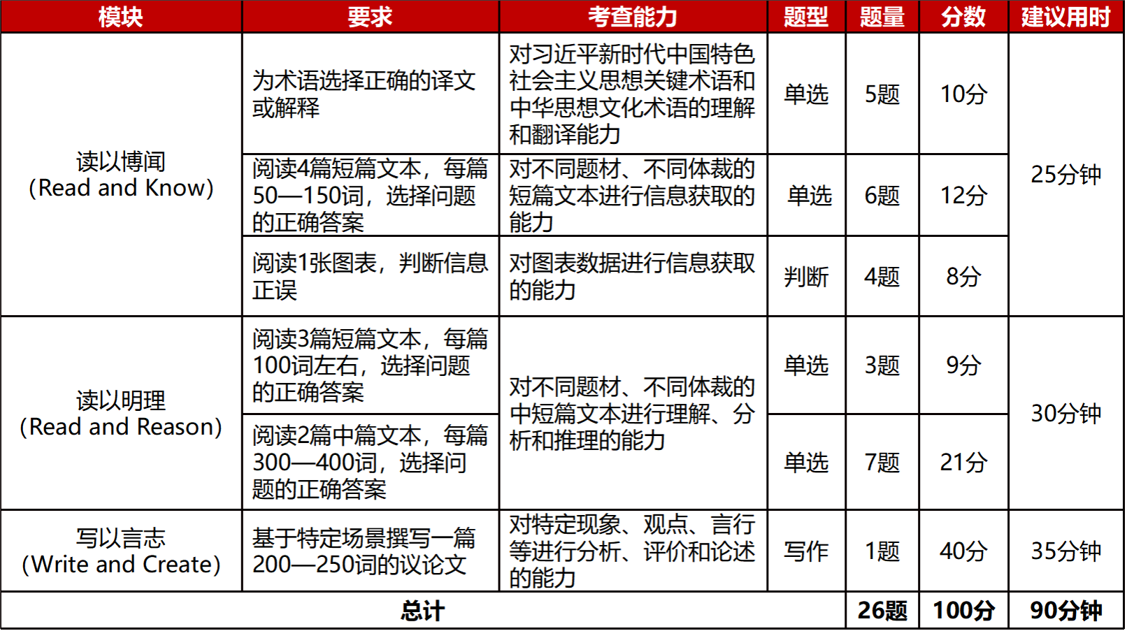 比赛内容:全国统一线上初赛赛题由大赛组委会提供,包括客观题若干道和议论文写作 1 篇,赛题构成见表 1。