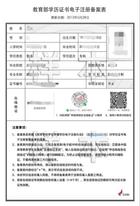 2.往届生网上报名时学籍学历校验未通过的:须提供“中国高等教育学生信息网”的《教育部学历证书电子注册备案表》或《中国高等教育学历认证报告》。学籍学历校验通过的考生无需提供。
