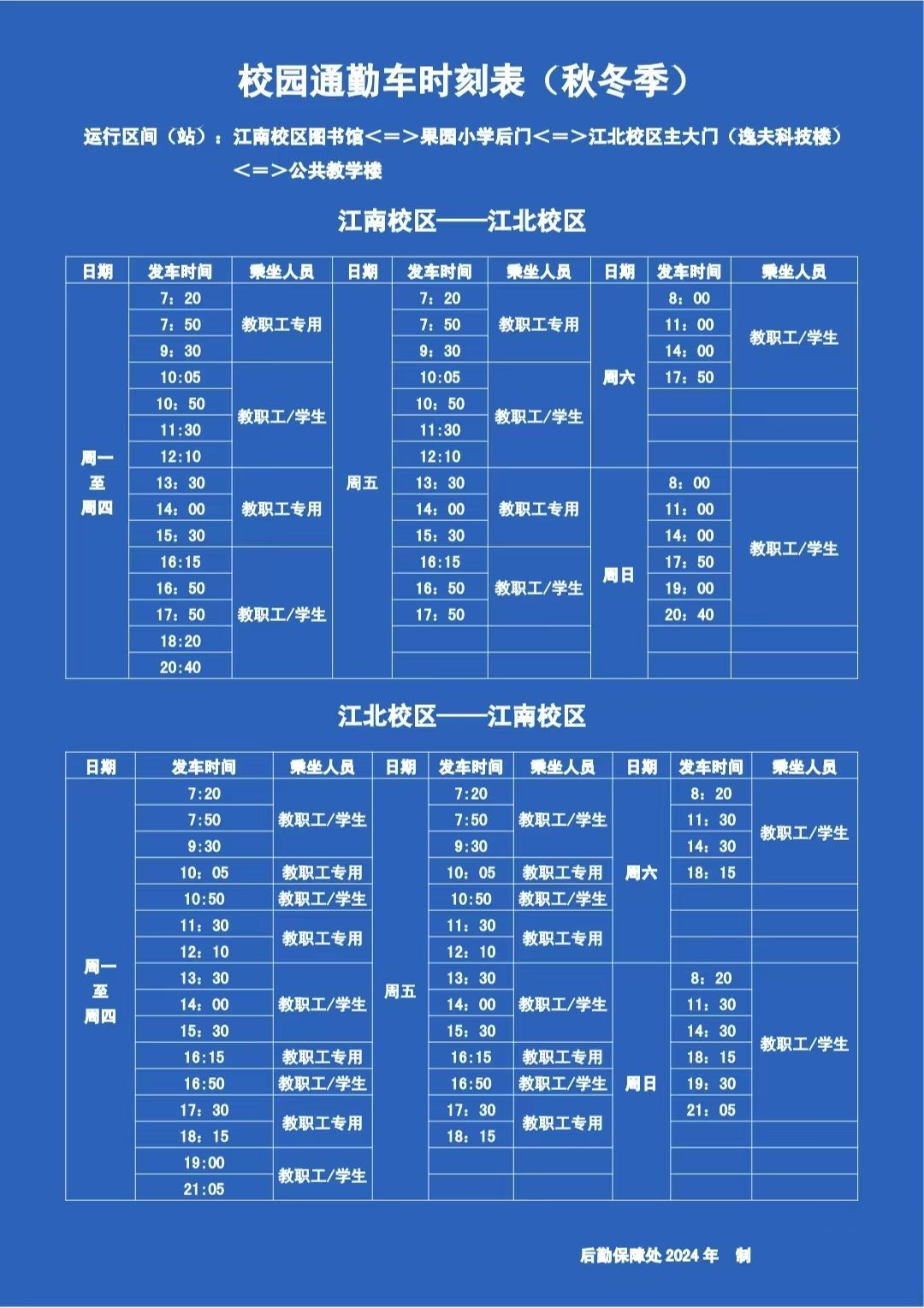 附:校园通勤车时刻表(秋冬季)