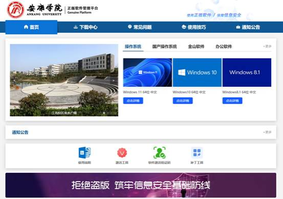 为推进使用正版软件工作,满足在校师生对国产操作系统、办公软件、杀毒软件的使用需求,学校以“年度订购授权”方式采购了WPS Office及WPS 365云服务、操作系统、杀毒软件授权,近日已全面更新正版化软件服务平台,为校园网用户免费提供正版化软件产品服务。