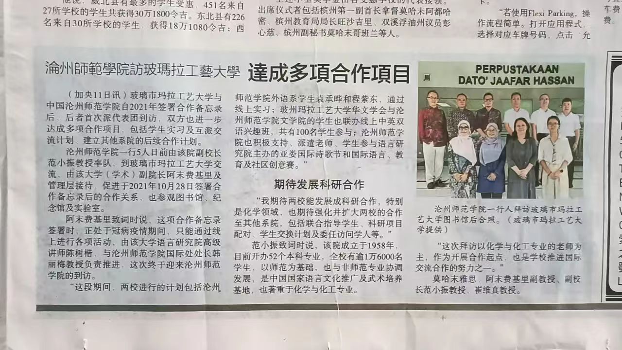 会后,太阳集团代表团与马来西亚玛拉工艺大学玻璃市分校领导举行座谈,双方围绕科研合作、联合指导学生、科研项目配对、学生交换计划及访问学者项目等多项内容展开深入交流,尤其在化学领域达成多项共识,为进一步拓宽合作范围至更多院系奠定坚实基础。此次座谈受到马来西亚多家主流媒体包括《星洲日报》《光明日报》及《光华日报》的关注与报道,彰显出太阳集团在国际学术交流中的积极影响力。
