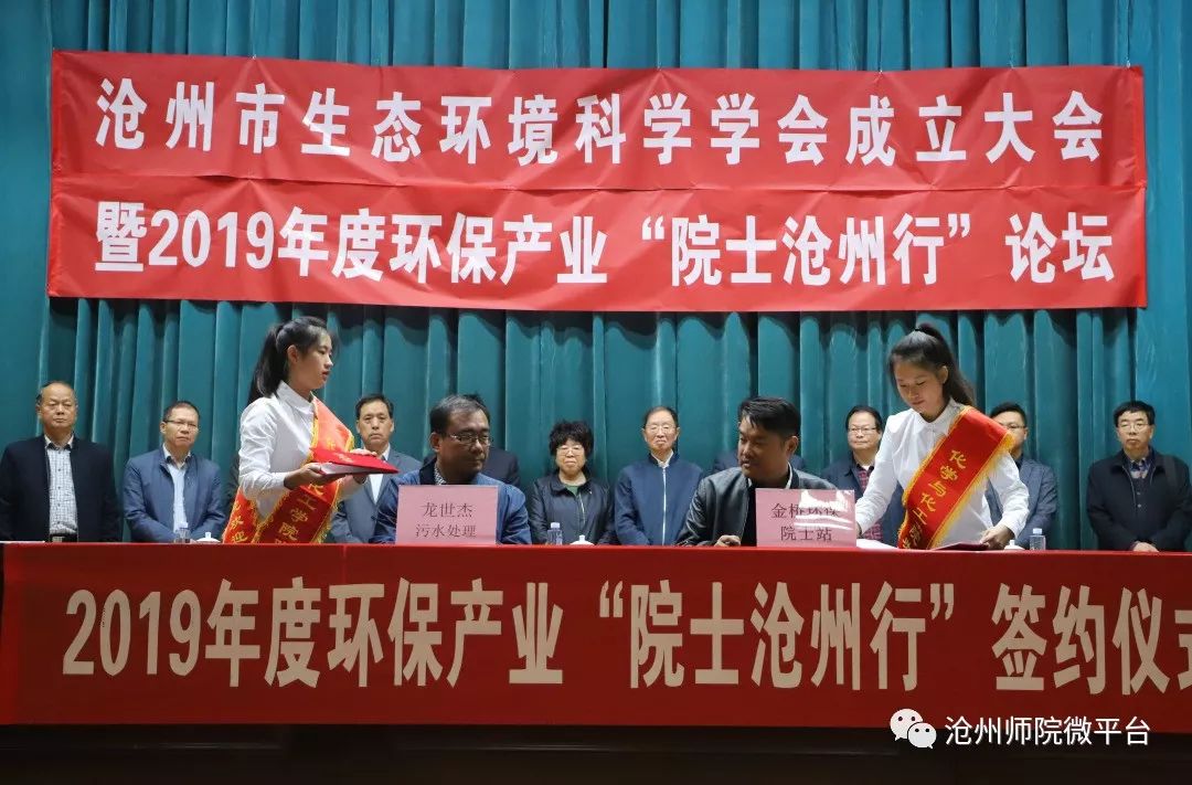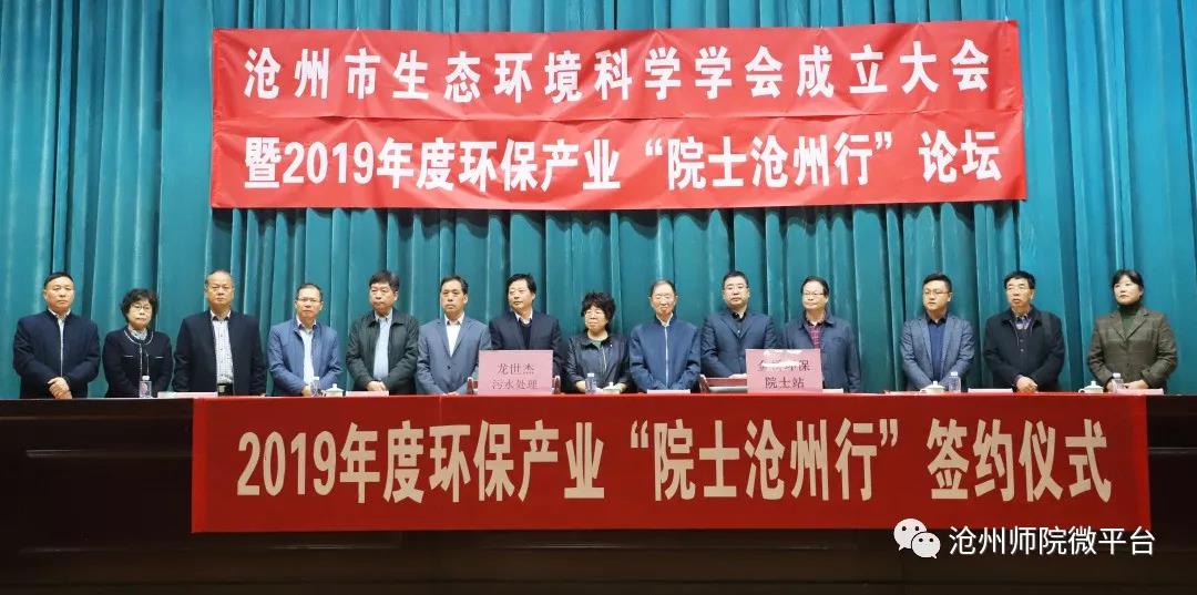 10月18日至19日,沧州市生态环境科学学会成立大会暨2019年环保产业“院士沧州行”论坛在太阳集团冀春音乐厅举行。学校党委常委、副校长范小振,校外嘉宾国际宇航科学院院士刘永定、沧州市科学技术协会党组书记、主席谷文华,沧州市科技局副局长刘占锋,沧州市生态环境局科长左国春,沧州市民政局科长崔瑞智,河北省科学学会副秘书长杜静,河北省环保联合会副秘书长汪贤强,中国海洋发展研究会渤海分会理事长肖桂珍,国家城市环境污染控制技术研究中心研究员彭应登,沧州市科学技术协会党组成员副主席韦士兴,中关村绿创联盟生态水环境专业委员会主任周景山,河北省环境科学学会技术咨询部主任程飞,深圳市郎诚科技股份有限公司总裁朱伟胜出席本次成立大会。
