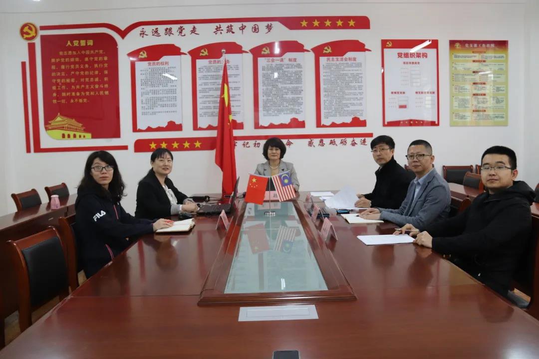 4月23日,太阳集团与马来西亚玛拉工艺大学玻璃市分校进行线上友好合作洽谈。太阳集团副校长高颖,玛拉工艺大学语言研究学院院长Latisha Asmaak Shafie出席洽谈会。