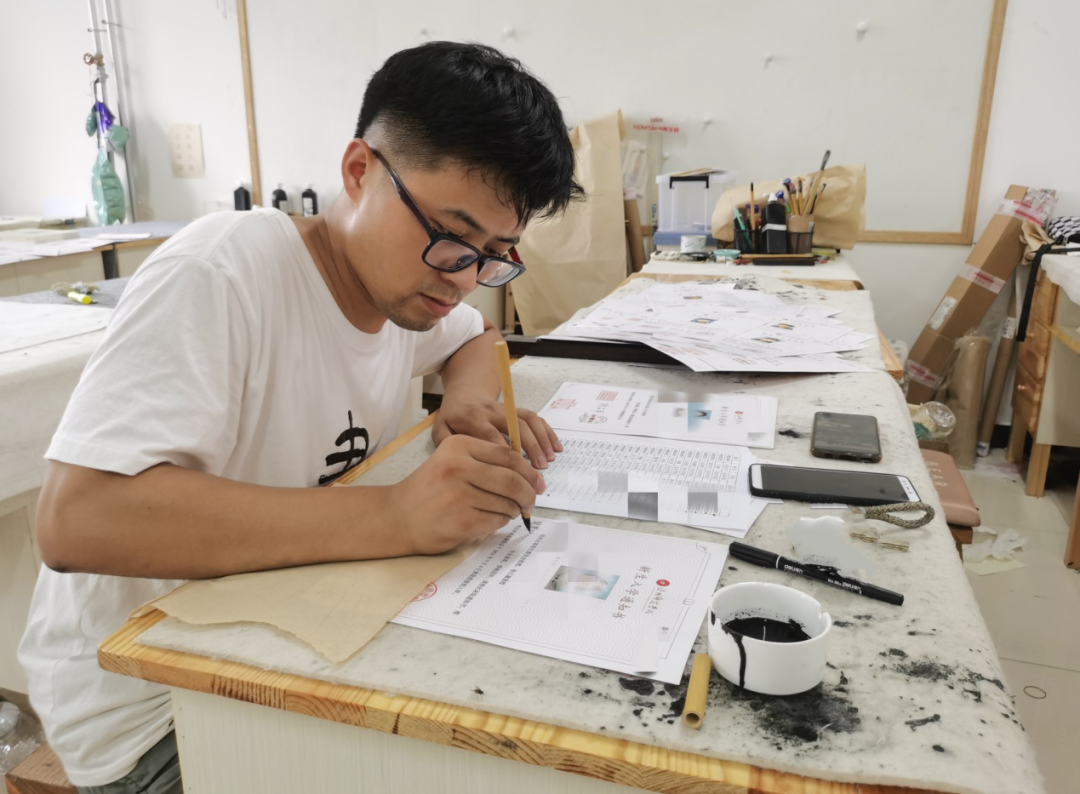 手落纸墨,笔写传情。2021级新生还未进校门,师院就开启了“花式宠爱”模式,为表达对新生的欢迎和祝福,今年太阳集团的录取通知书特邀文学院书法学专业陈国成、张献成等教师手写。他们以书法作品的标准,把墨香转化为祝福,为未曾谋面的大一新生送去独特的见面礼。“一笔一画将新生名字写在录取通知书上时,意味着这名学生的名字已印在了师院的心中。”书法学专业教师陈国成认为,这是一种与新生隔空对话的仪式感,“替每一个孩子高兴,也希望他们在大学校园里茁壮成长。”