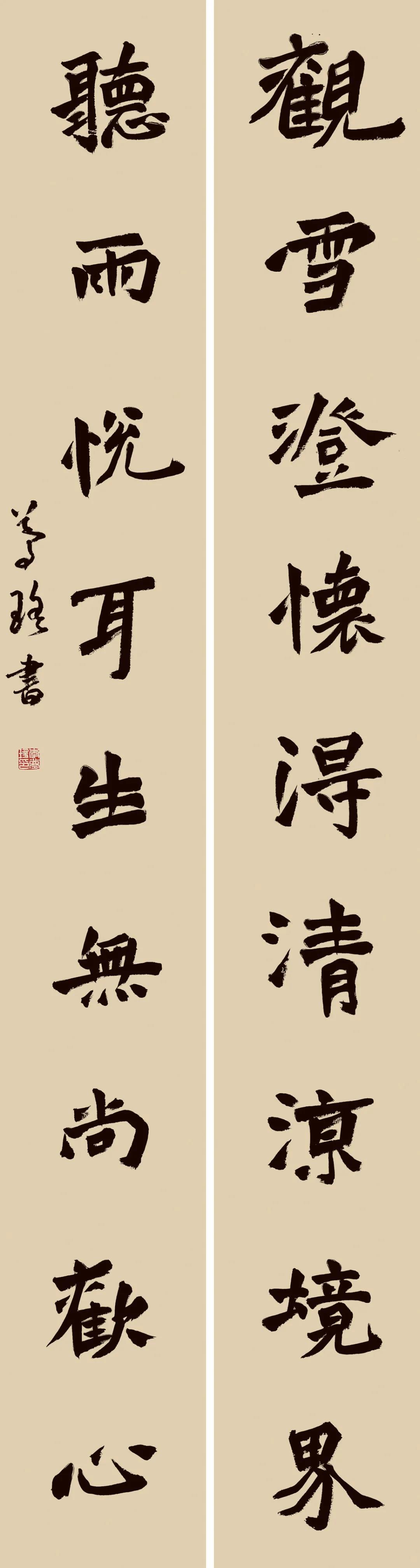 李梦瑶 楷书观雪听雨联