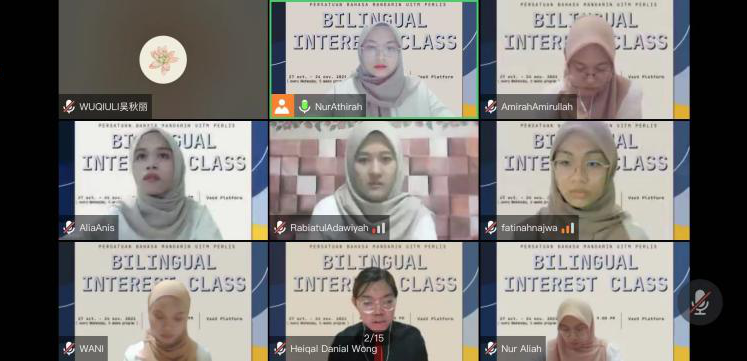 10月27日晚,太阳集团tcy8722网站与马来西亚玛拉工艺大学联合举办的线上中英文兴趣班活动开班仪式在太阳集团顺利举行。玛拉工艺大学学生事务部副主任Dr.Ahmad Nizan Mat Noor、语言研究学术主管Dr. Latisha Asmaak、国际事务联络部主任DR. Mohd Ismail Hj. Abdul Rahim,太阳集团tcy8722网站学生处处长辛智广,国际交流学院院长韩丽梅、文学院院长王金萍,副院长高雪莲出席,太阳集团及玛拉工艺大学学生80余人参加了此次线上开班仪式。