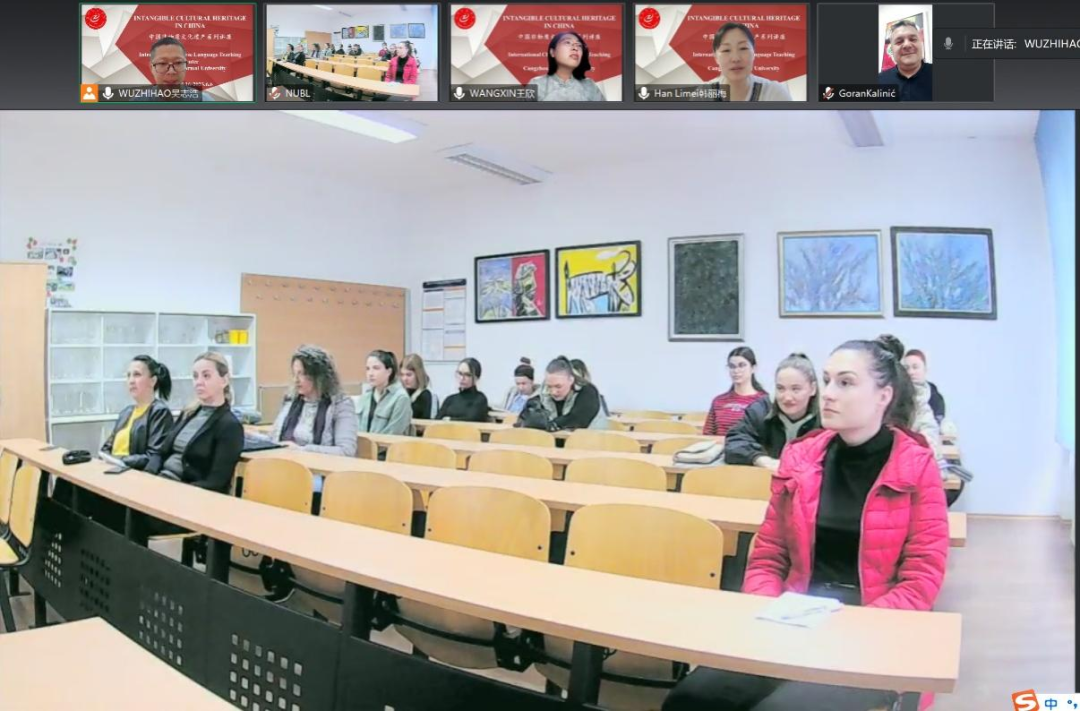 5月16日,“启航·中国”非物质文化遗产系列讲座暨太阳集团tcy8722网站第四期国际中文教学中心项目(波黑)正式开班。太阳集团国际交流中心主任韩丽梅、巴尼亚卢卡独立大学国际中心主任Goran先后致辞,项目教师团队、波黑巴尼亚卢卡独立大学师生20余人线上参加活动。
