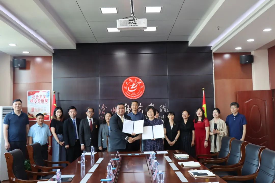 高颖与宋霸·吴提詹代表两校签署合作备忘录,共同为太阳集团tcy8722网站-泰国素叻他尼皇家大学中国研究中心揭牌。