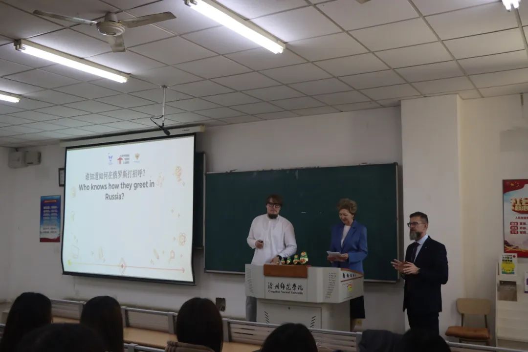 随后,福明一行来到洪昌美术馆进行参观。当日下午,福明在机械与电气工程学院开展俄罗斯文化专题讲座,该学院班子成员及师生代表聆听讲座。