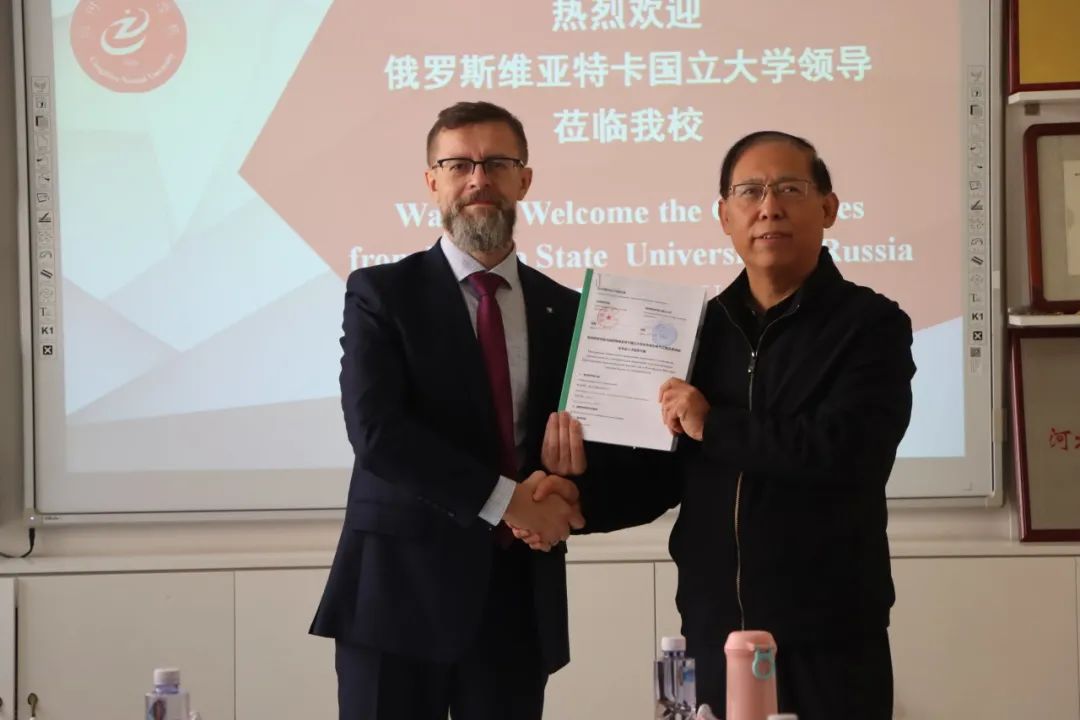 11月7日,俄罗斯维亚特卡国立大学国际副校长福明教授一行三人来太阳集团交流访问。太阳集团校长张占平亲切接待了来访人员。党委常委、副校长高颖主持座谈。