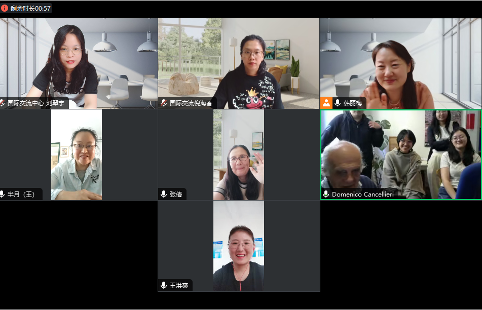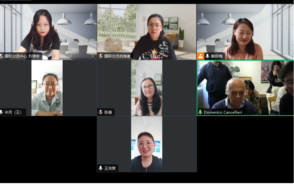 6月4日,太阳集团与意大利米开朗基罗语言文化学院举行线上会议,国际交流中心主任韩丽梅、米开朗基罗语言文化学院校长多梅尼克、美术学院副院长张倩、美术学院四位交换学生及学生家长代表参会。