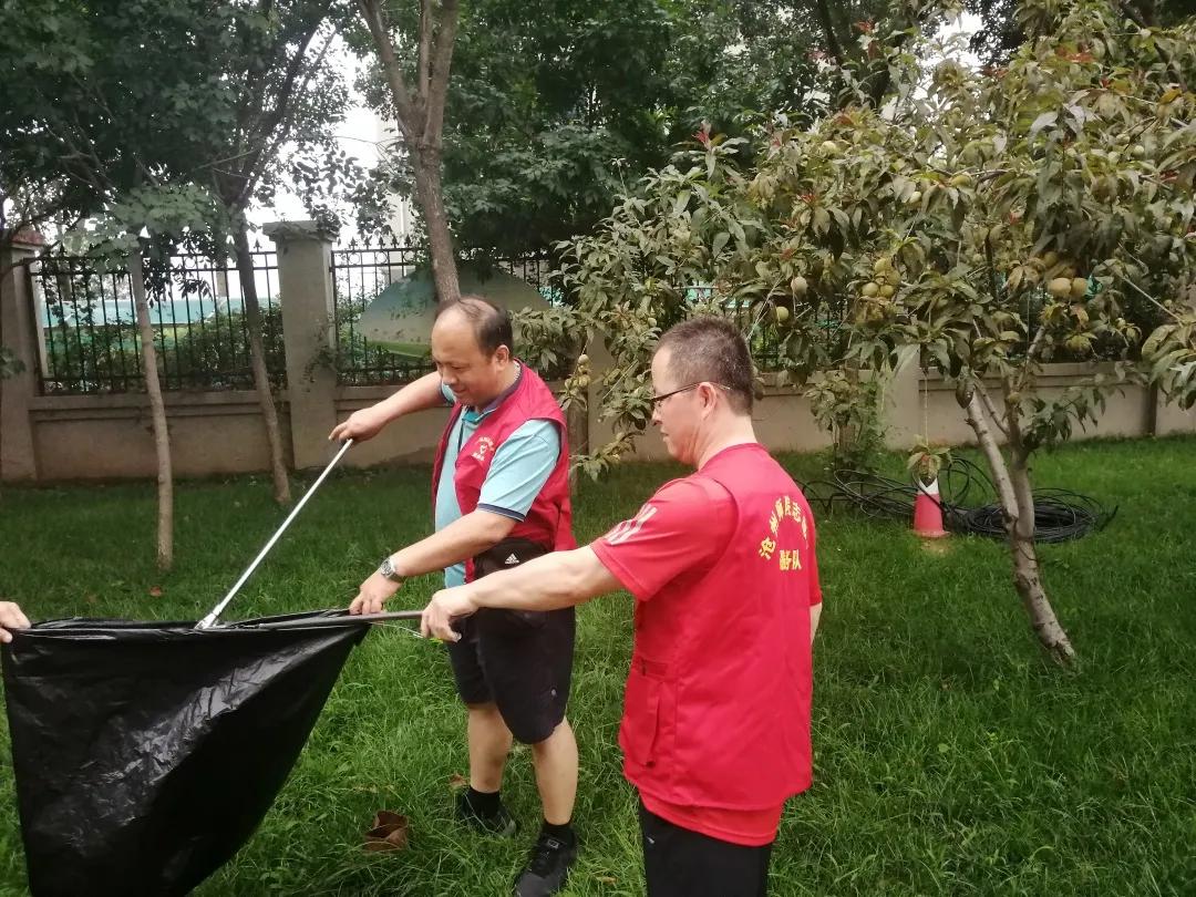清晨,党支部的老师们早早来到学校集合。恰逢立秋,红色马甲在清晨的阳光中格外耀眼,大家分发完劳动工具和垃圾袋,就投入到热火朝天的劳动中。一路上大家对街边的白色垃圾、枯枝、烟头、果皮等各样垃圾进行了认真清理。经过一个小时的认真打扫,整条街道焕然一新,入眼皆净。