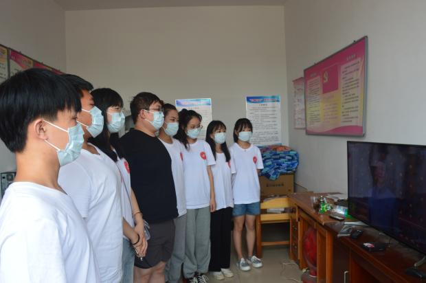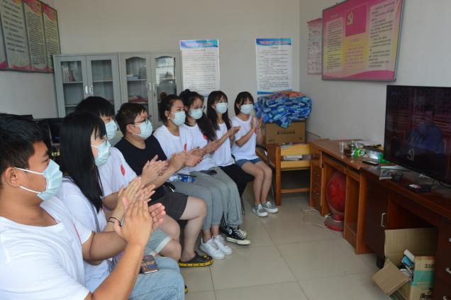 恰逢中国共产党百年华诞,实践团的老师和同学们和当地学生、村民一起在苗庄村委会集中观看建党一百周年庆祝大会,共同庆祝中国共产党百年华诞,学习习近平总书记重要讲话精神。老师和同学们纷纷表示要坚定理想信念,自觉扛起使命责任,用实际行动践行“请党放心、强国有我”的誓言。