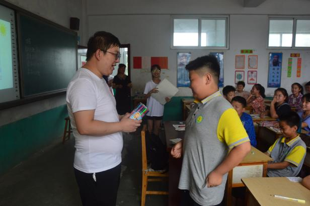 课堂上,大学生志愿者围绕如何关注孩子心理健康问题,进行了生动讲解,并开展了丰富多彩的团队训练活动,增进师生间的友谊,增强孩子们的自信心和沟通能力,激励同学们开阔眼界,提升自我素养,尽早树立成人成材目标。与此同时,他们还为孩子们精心准备了彩笔、剪纸画等礼物,让同学们沉浸在被关爱和探索学习的氛围中。