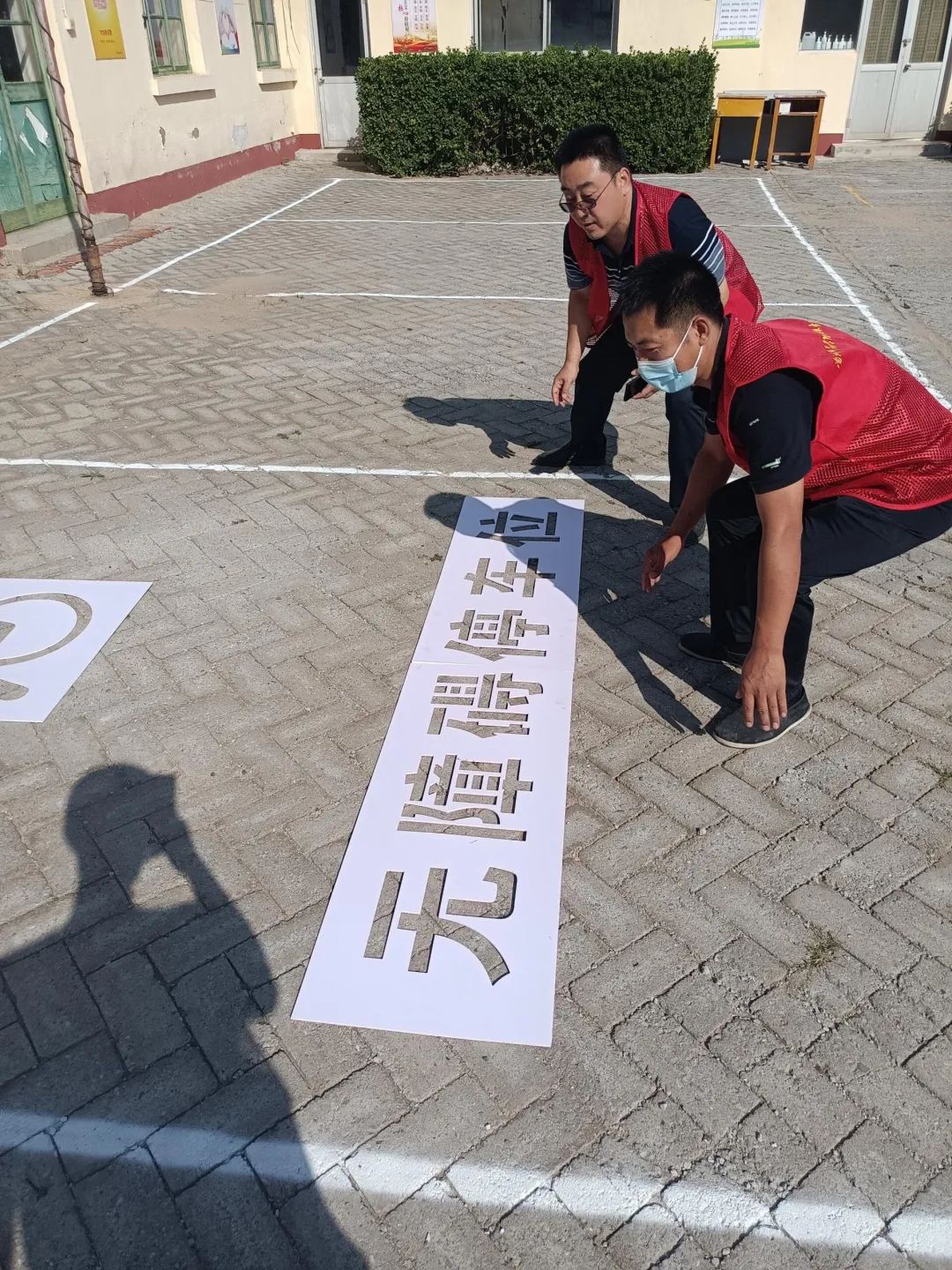 安全处干部职工携带着油漆、划线工具来到张庄子村党群服务中心,大家分工明确,有条不紊地规划出机动车停车位、自行车停车位、无障碍停车位,并对陈旧不清晰的停车线重新进行了粉刷。经过大家的努力,一个个崭新、整齐、有序的停车位施划完成,保证了机动车车头朝向一致,停放整齐。