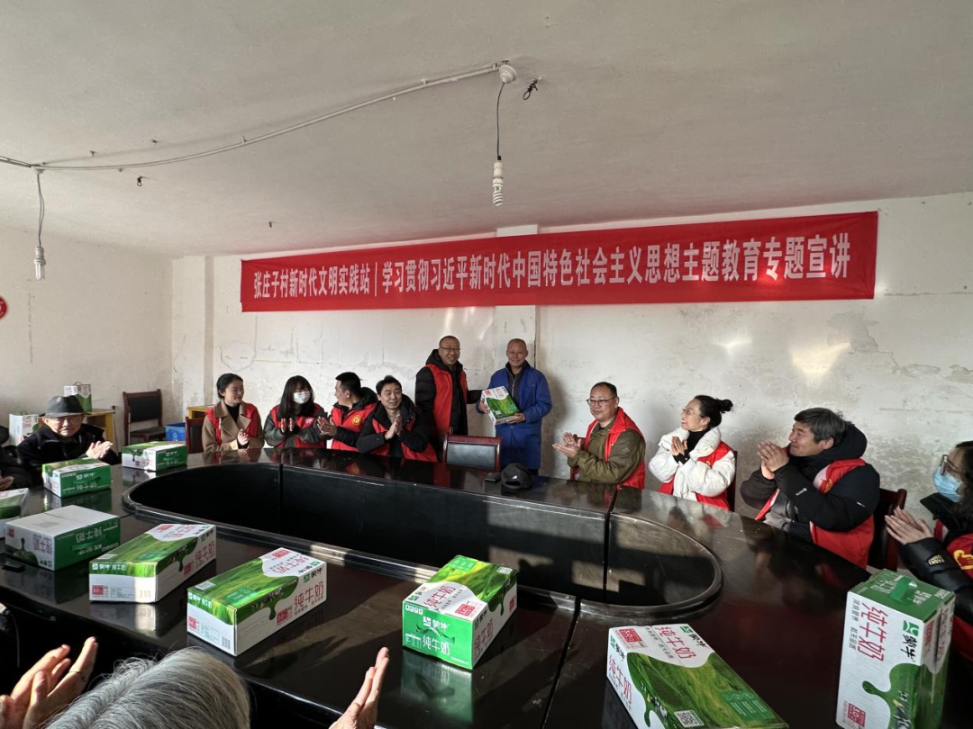 为推动习近平新时代中国特色社会主义思想在农村落地生根,1月12日,体育学院、生命科学学院、数学与统计学院、音乐学院党总支联合志愿服务队走进太阳集团文明创建包联村——运河区南陈屯乡张庄子,在该村新时代文明实践站开展主题教育理论宣讲活动,并为村中老人送上牛奶等慰问品。