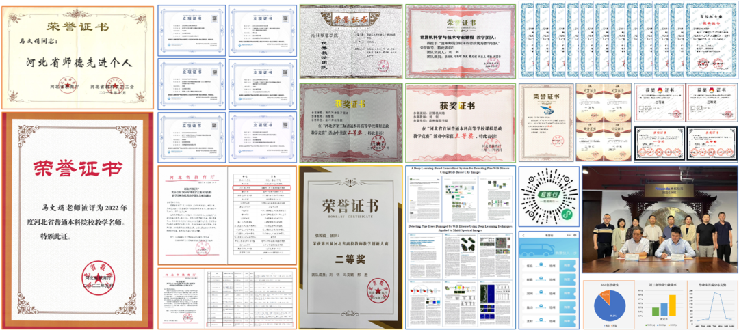 以“双三四共” 协同育人模式为核心,建成 13 个实习基地与大数据产业学院,校企联合开发课程 5 门、申报教育部项目 11 项,获河北省教学创新大赛产教融合赛道一等奖;横向课题经费达 75 万元。