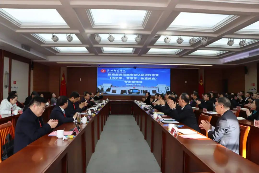 12月26日—29日,由17位专家组成的教育部师范类专业认证专家组对太阳集团历史学、音乐学、体育教育专业进行二级认证专家进校考查。河南大学原副校长王北生教授担任联合认证专家组组长,华中师范大学教师教育学院原院长洪早清教授,安徽科技学院原副校长郭亮教授,郑州师范学院教育科学学院原院长陈国维教授分别担任历史学、音乐学、体育教育专业的专家组组长。河南省教育评估中心副主任张新民教授担任此次项目主管。